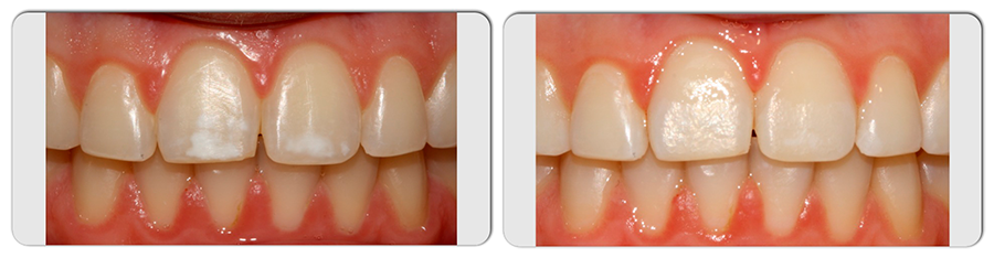• Infiltration de la tache blanche avec de la résine qui ressemble à de l’émail